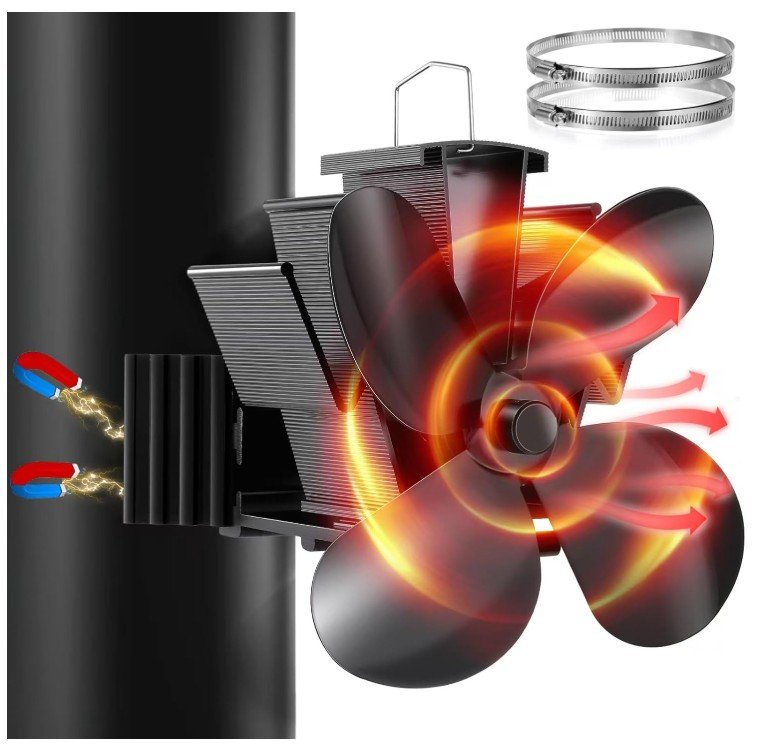 Hanaoyo Magnetic Fireplace Fan, Improved Stove Fan Without Electricity