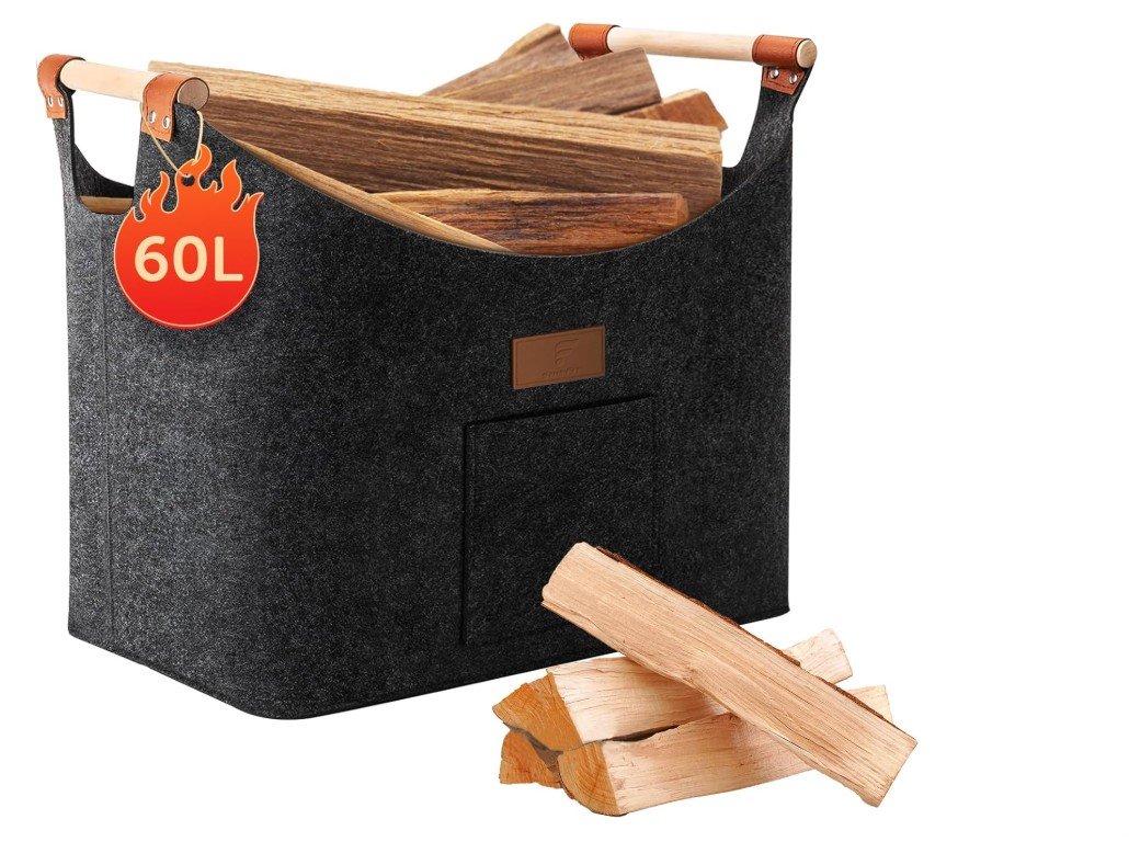 shinfly Log Basket for Firewood 60 L, Firewood Basket Large for More Firewood in the Fireplace